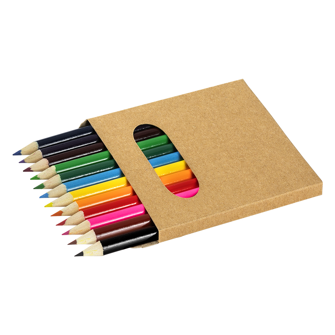 Opis Set 12 lesenih barvic v kraft kartonski škatli, idealen za ustvarjalne dejavnosti v šoli, pisarni ali doma. Sprednja stran embalaže ima ovalno okno, skozi katero so barve vidne brez odpiranja škatle. Barvice imajo okroglo obliko s sijajno barvno površino, ki zagotavlja gladko risanje in odlične rezultate. Ključne značilnosti: Set 12 lesenih barvic • Kraft kartonska embalaža • Ovalno okno za prikaz barv • Okrogla oblika barvic • Sijajna barvna površina