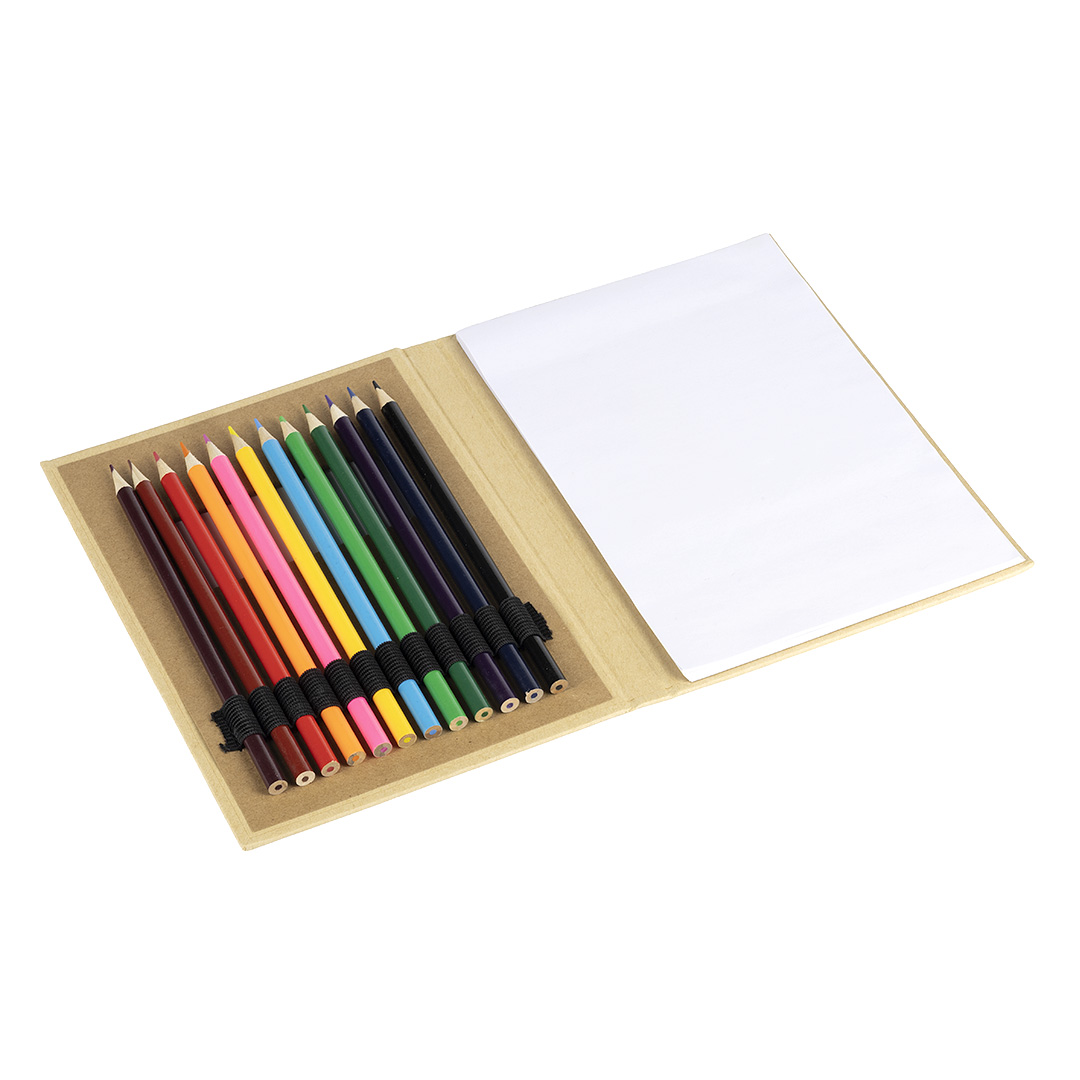 Opis Risalni set z 12 barvicami in blokom s 70 praznimi belimi listi, zasnovan za otroške ustvarjalne dejavnosti in šolsko uporabo. Kartonska platnica ima na sprednji strani okno, ki omogoča delen vpogled v barve brez odpiranja embalaže. Praktična izbira za šolo, delavnice in promocijske kampanje. Ključne značilnosti: Risalni set • 12 barvic • 70 praznih belih listov • Kartonska platnica • Okno za predogled barv • Primerno za otroke in šolo